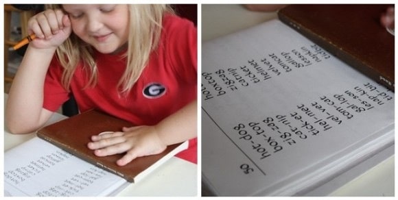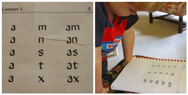 Preparation and how we use Alphaphonics in our home: Other than reading the introduction and other teacher sections when I first purchased the book, there was no daily teacher prep for me. The last two years I placed the Alphaphonics book in my preschooler then kindergartener’s one, large workbox. The Alphaphonics book was there for us to leave open for the next day’s practice. You might like to see all the gentle and easy ways of reading we use.