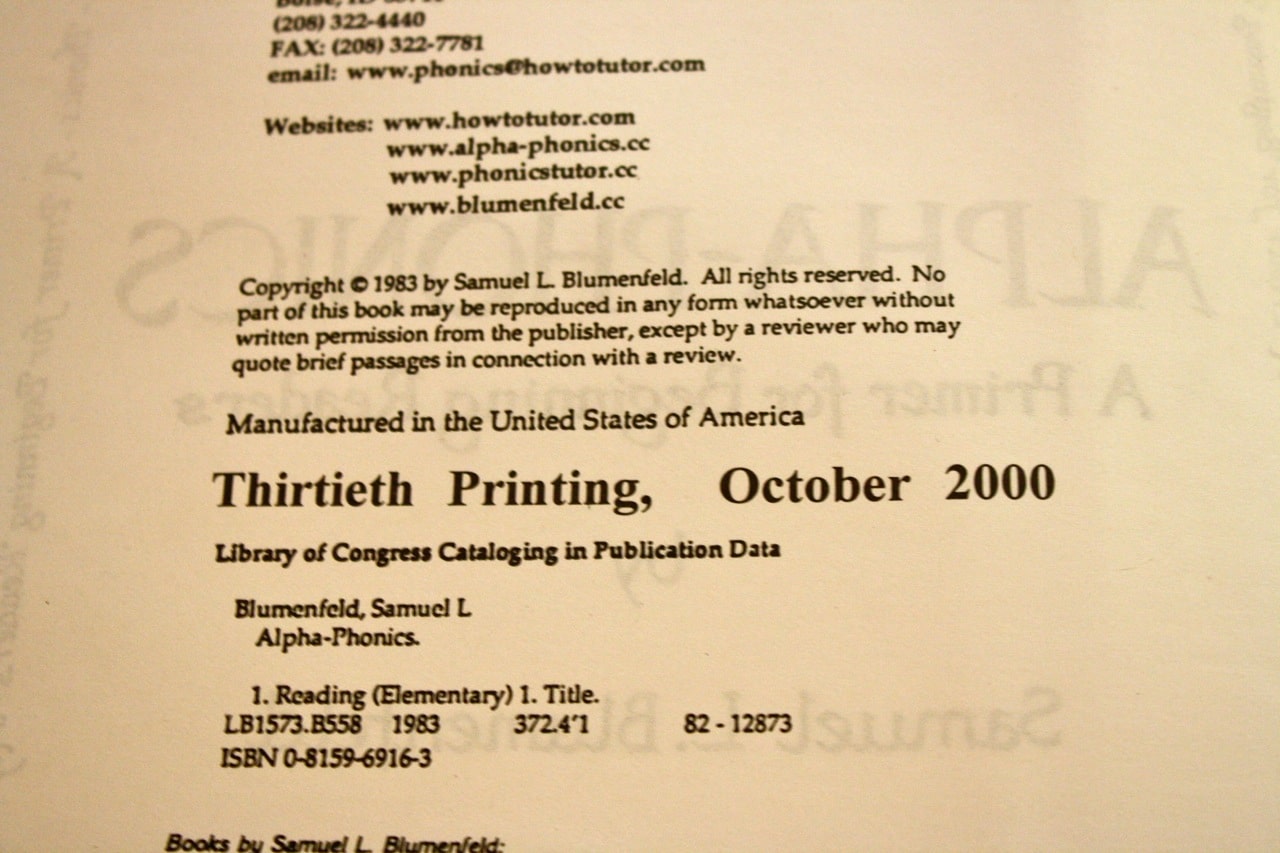 Basic. Simple. Long-lasting. Used with all of our five children to learn how to read. The phonics book that has been the go-to teaching tool in our family. Alphaphonics by Sam Blumenfeld is a full, logical resource for teaching students of all ages to learn to read.