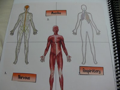 My 9 year olds favorite part of her notebook is this page in the very back. At the end of each lesson she gets to add on the various body systems and organs that she has learned about.