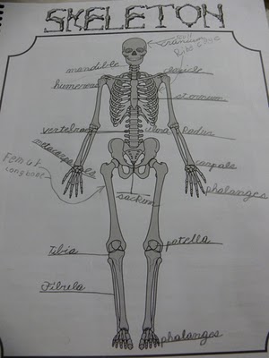 While learning about the skeletal system this was a page in the kids notebooks that they needed to complete.