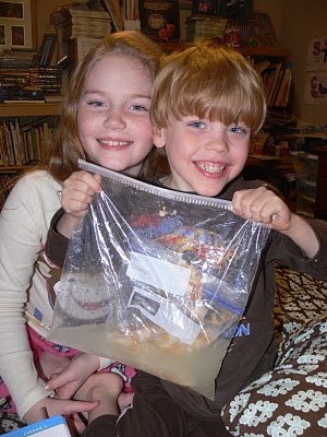 While learning about Chyme we took a ziplock bag, a piece of bread, and some water to simulate our stomach in action. After placing the bread in the bag we added water until it covered the bread. We then sealed the bag and put it into another for protection. The kids squeezed and squished the bag as our stomach does to our food and they say what happened to the bread which is the same thing that happens to our food when our stomach churns it.