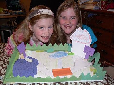 While learning about our digestive tracts the kids project at the end of the chapter was to create a digestive system theme park. My daughters Natalie and Annie worked together to create this one.