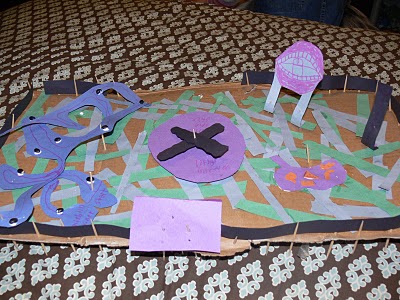 On the back of the pieces of food the kids had to write facts about various parts of the Digestive tract.