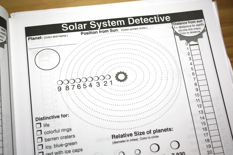 One of my favorite parts of the student book are the detective pages. These are one page worksheets that can be filled in with details; there are boxes to tick and places to draw diagrams.