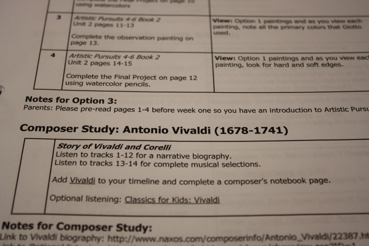 This was our first year of homeschool and I did not include a music or art curriculum because I was highly intimidated by those 2 subjects…they are not my forte. This curriculum is exactly what I am looking to include in our studies for next year because it is done for me, but I think I will also learn just as much.
