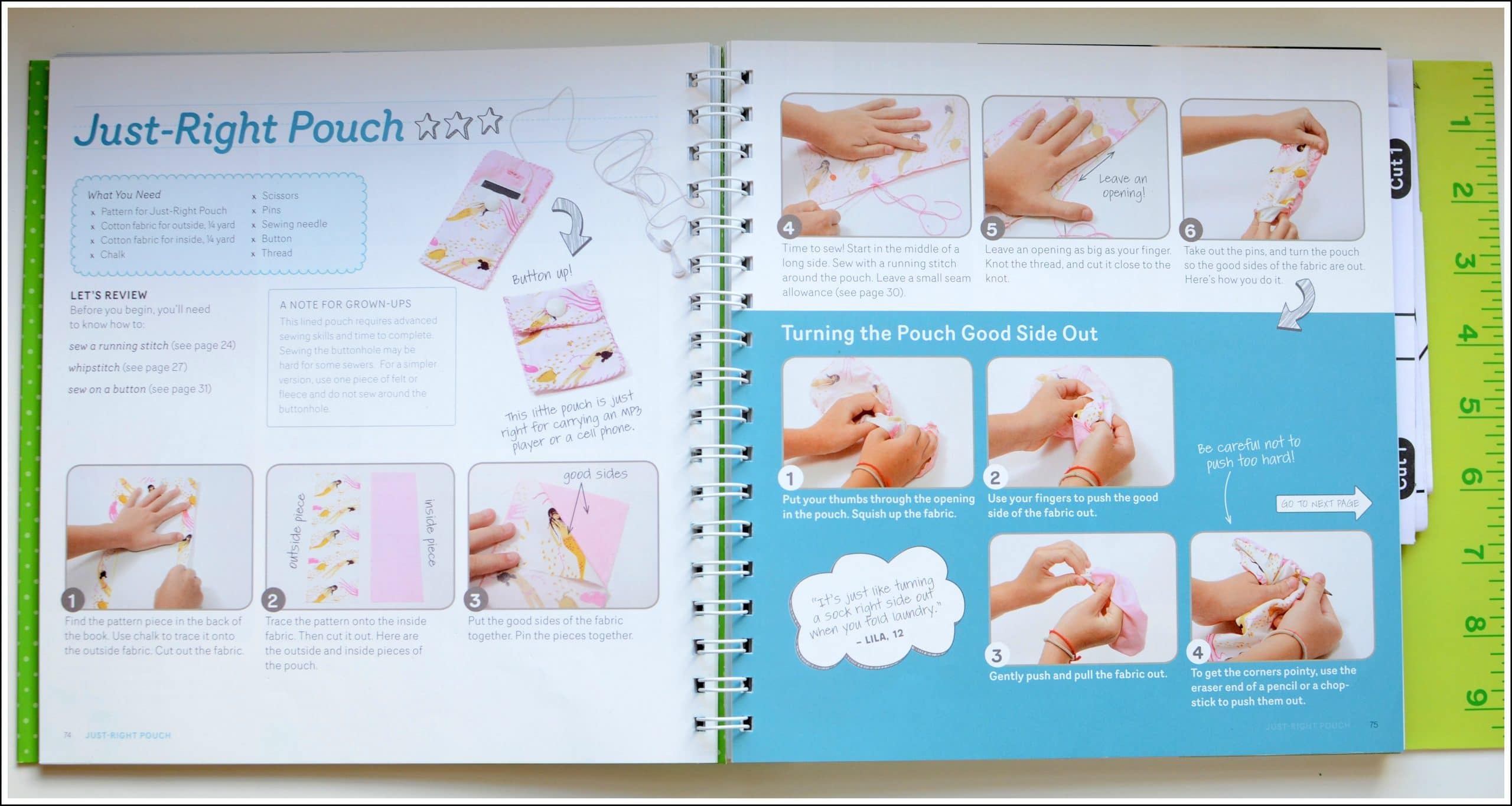 - It isn’t a girly book. Though a couple projects like the skirt would appeal only to girls, most projects would be enjoyed by boys and girls and the design of the book is simply colorful, not pink and frilly. I am a firm believer that boys benefit from sewing skills, too, and find my son enjoys the occasional sewing project.