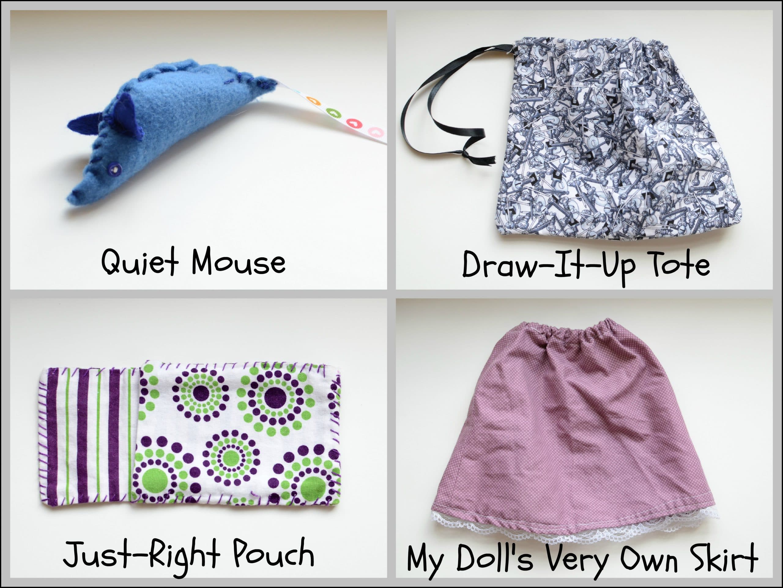 - Along the way children learn skills they can apply to future projects: sewing on buttons, tracing patterns, making a casing, adding trim.