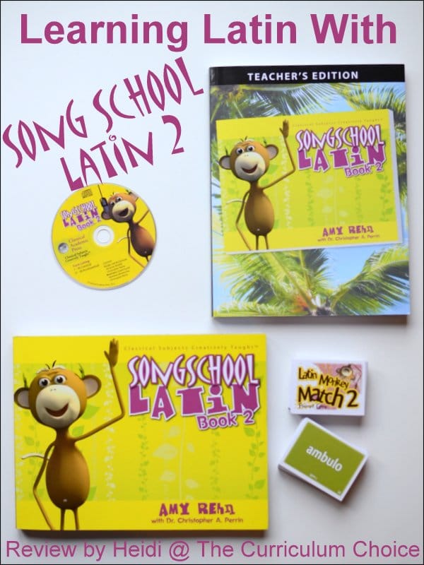 We LOVE the songs. Seriously, the tunes are so well-done and varied that we enjoy them. My son even listens to his at bedtime just for fun. Our whole family is learning from these songs! In fact, I ordered the Song School Latin 1 audio CD so we could learn our review words as well as we’re learning the new words. If you already have SSL 1, wait until you hear SSL 2! Both sets are very well done but I think the songs for SSL 2 are even better. If you have time or money for nothing else, you could play the songs in the car or while you make lunch and feel like you’ve accomplished something.