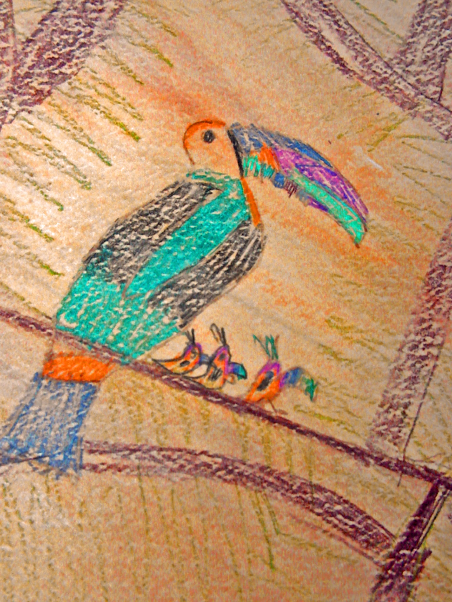 One morning my daughter drew this picture, after reading a story about Tucans. I love how art is used throughout this curriculum!.