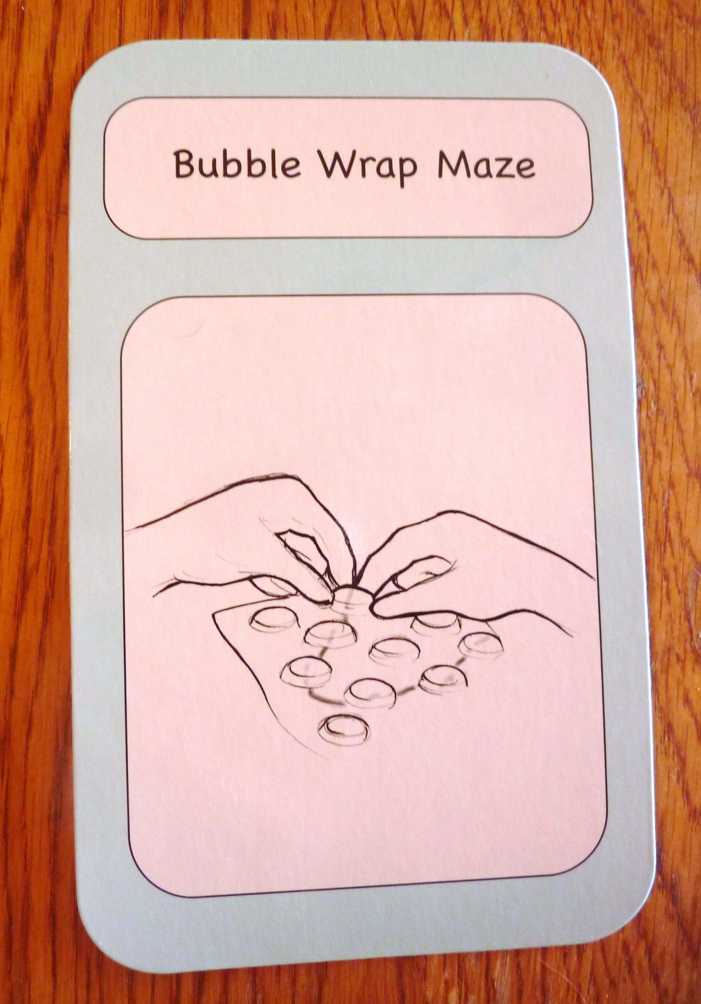 The Bubble Wrap Maze gives practice in the fine pincer grip, by popping the bubbles with the fingertips. Make it a game and pinch along a path on the bubble wrap! Learning this grip pattern can take a lot of practice and it’s ok if your child continues to use their own grip style for awhile. Some kids do well with their own unique grip patterns.
