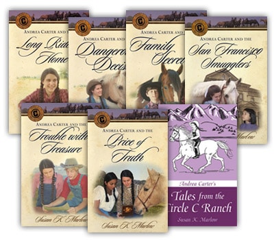 Andrea Carter, spunky, impulsive, well-meaning, and full of adventure, lives on Circle C Ranch with her large, close-knit family and her beloved horses. Out in California in the late 1800’s many things were different, but people have not changed all that much and Andi’s escapades and adventures still make for exciting reading for kids of all ages.